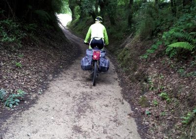 Pasado Sarria, nos encontramos con Marc y Alex dos chavales a los que ayudamos con un pinchazo subiendo al Alto del Perdón, pedaleamos juntos unos cuantos km hasta Portomarín, subiendo, bajando, rompe piernas total. Resulta que Marc es analista de sistemas y trabaja para la empresa del juego Candy crush, dato simpático.