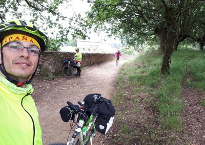 Llegamos a Gonza y decidimos sellar en un bar, cuál es nuestra sorpresa que al entrar nos encontramos a Miguel, Manolo y Adrián que están almorzando. Hablamos con ellos un rato y continuamos nuestra marcha unos kilómetros más adelante nos dan alcance y pedaleamos junto a ellos un rato. También nos topamos con unos cuantos ciclistas veteranos que van haciendo el camino desde León, llevan una furgoneta de apoyo con todo el equipaje.