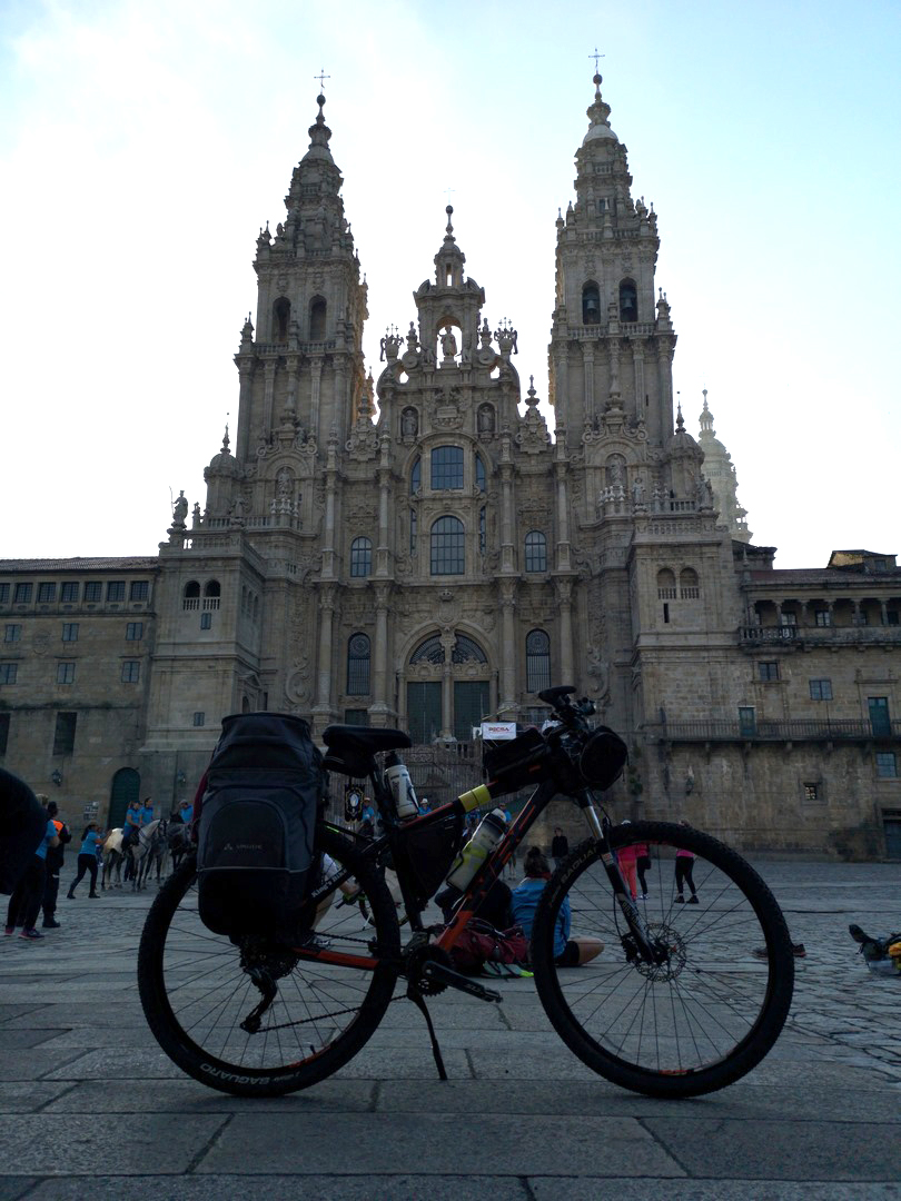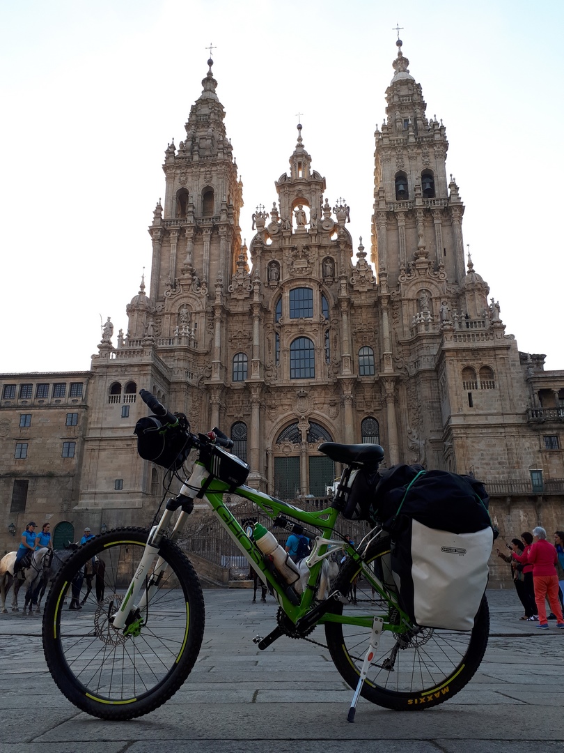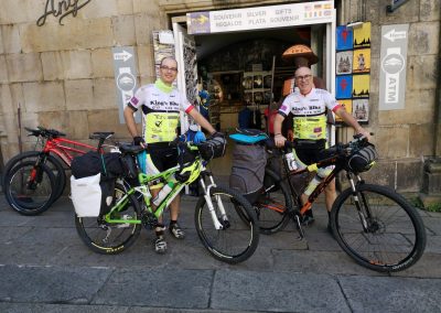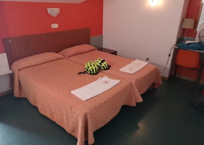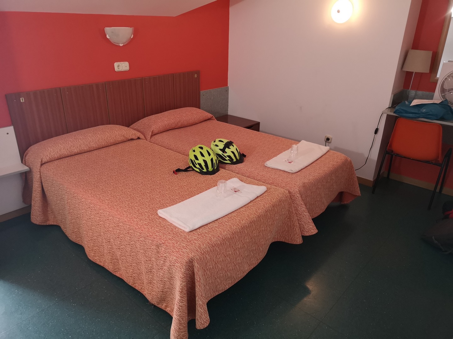 Regresamos otra vez al hostal donde dejamos todas las alforjas en consigna mientras nos preparan la habitación y nos volvemos de nuevo a por las tartas de Santiago y a por una empanada en la plaza de abastos, una vez compradas las viandas, regresamos al hostal, ya tenemos la habitación y nos instalamos.