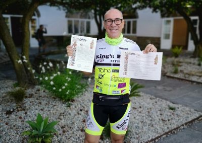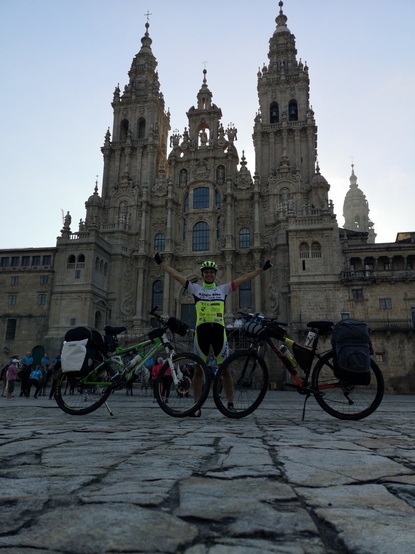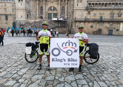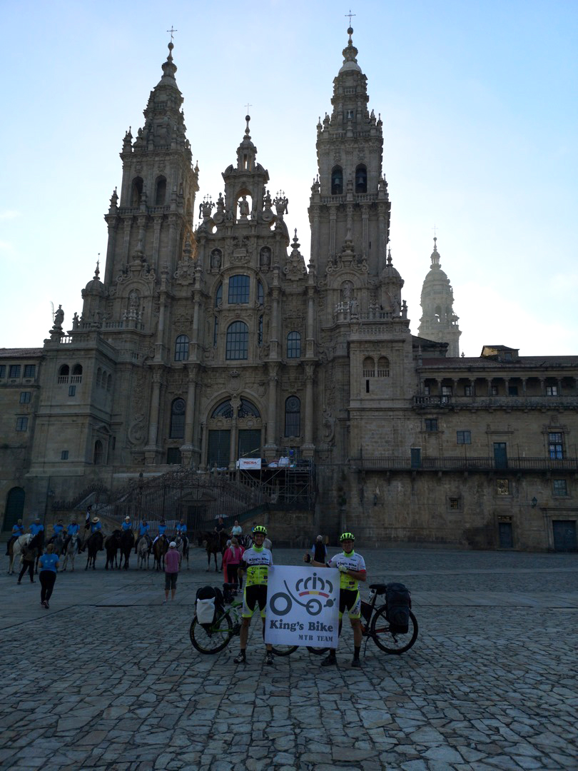 Nos hacemos unas cuantas fotos, una muchacha se ofrece a hacernos unas fotos para que Manolo y yo podamos posar orgullosos, frente a la Catedral, con la bandera de los King’s Bike.