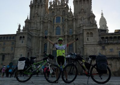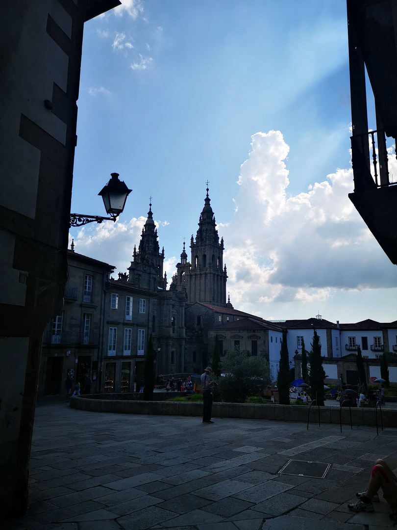 Es temprano todavía y hay poca gente en la calle, hemos adelantado a algunos peregrinos sueltos y un par de grupos de chavales de los que ya adelantamos el día anterior. En poco más de media hora hacemos nuestra entrada triunfal en la Plaza del Obradoiro y la emoción nos embarga.