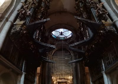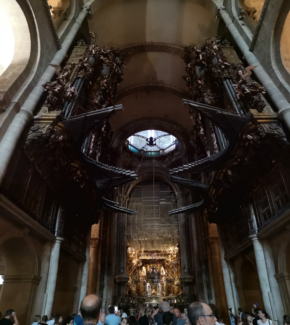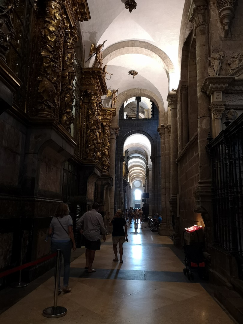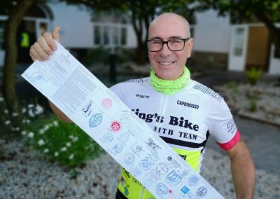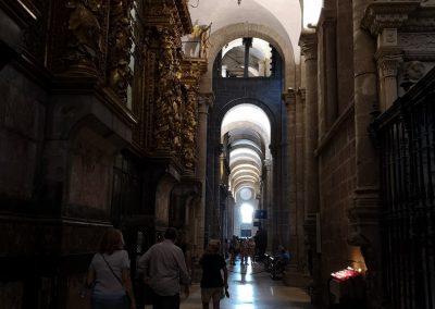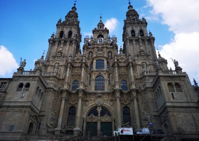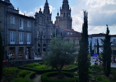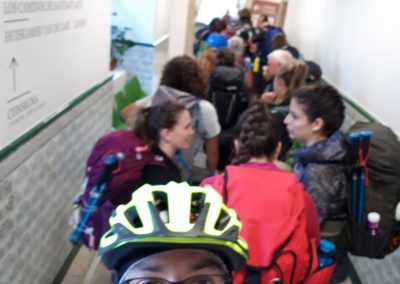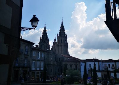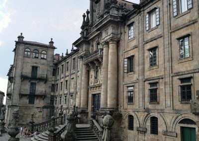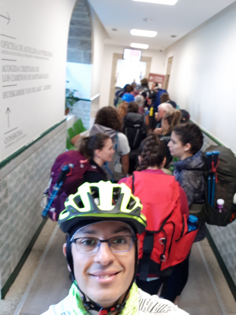 Tras las fotos buscamos donde se entrega la Compostela y al entrar en el edificio, ¡sorpresa! mi amigo alemán está de los primeros en la cola y al verme me saluda con gran alegría, yo levanto el puño en señal de ¡lo hemos conseguido! Después de 15 o 20 minutos de cola, por fin nos toca y conseguimos nuestra Compostela así como el certificado de distancia recorrida.