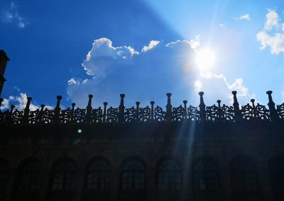 Decidimos, después de darnos unas vueltas por la plaza y hacer fotos buscar el Hostal La Salle, preguntando unas cuantas veces conseguimos llegar pero la habitación no está libre todavía, así que nos damos una vuelta por Santiago.
