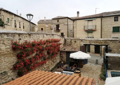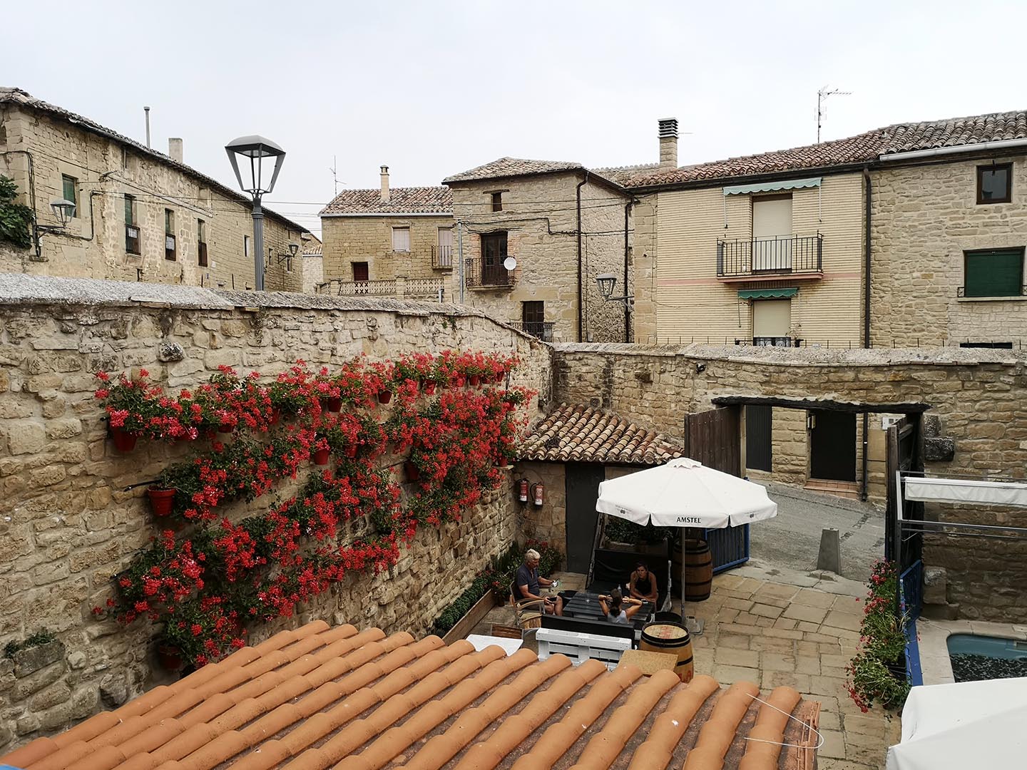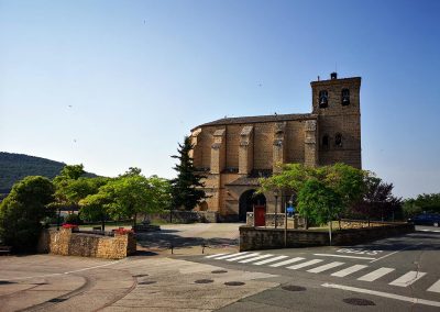 Por fin, después de una empinada cuesta por la carretera, el camino coincide con esta durante unos cientos de metros, llegamos a Torres del Río, pues no, no es Torres del Río, es Sansol, segunda desmoralización, afortunadamente nuestra meta está a pocos metros, bajando por una senda con mucha pendiente y a sólo unos cientos de metros, llegamos por fin pero no sin antes subir la super empinada entrada al pueblo.