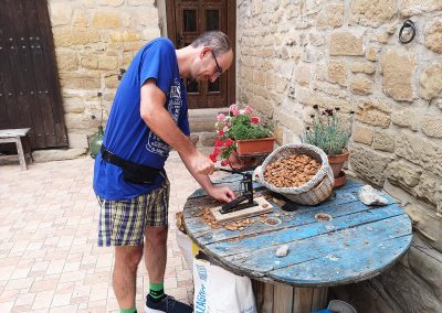 Primer sello de hoy en Cirauqui, obtenido en el pasadizo de la Plaza Mayor y continuamos la marcha. En Villatuerta Manolo tiene la brillante idea de echar una primitiva, mira que si nos tocase en Villatuerta.