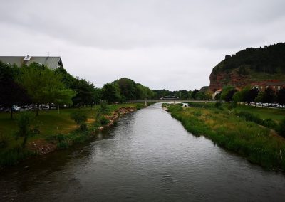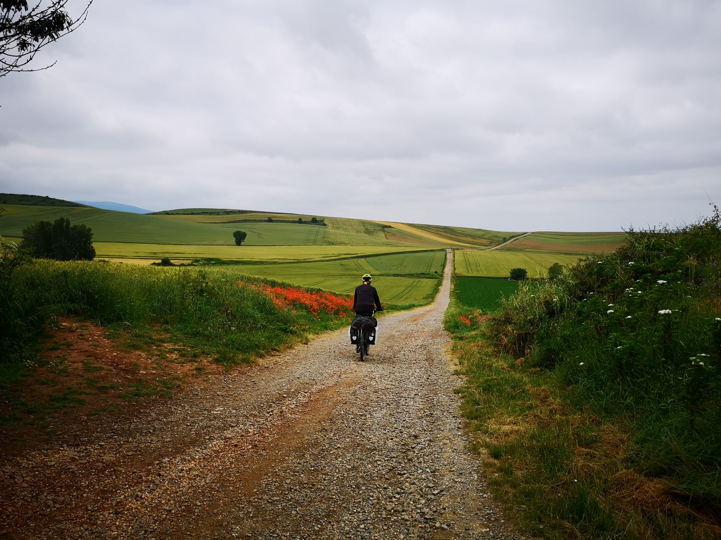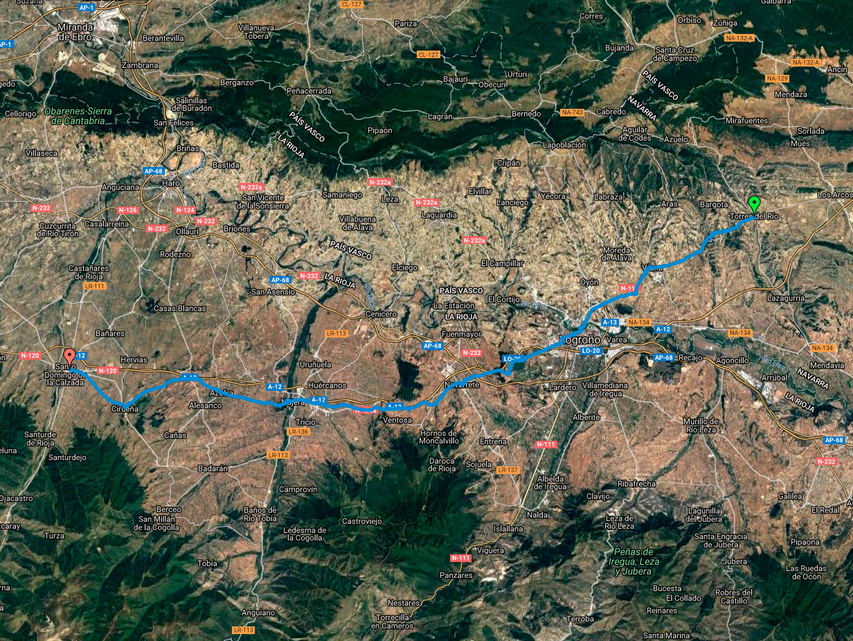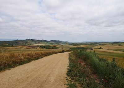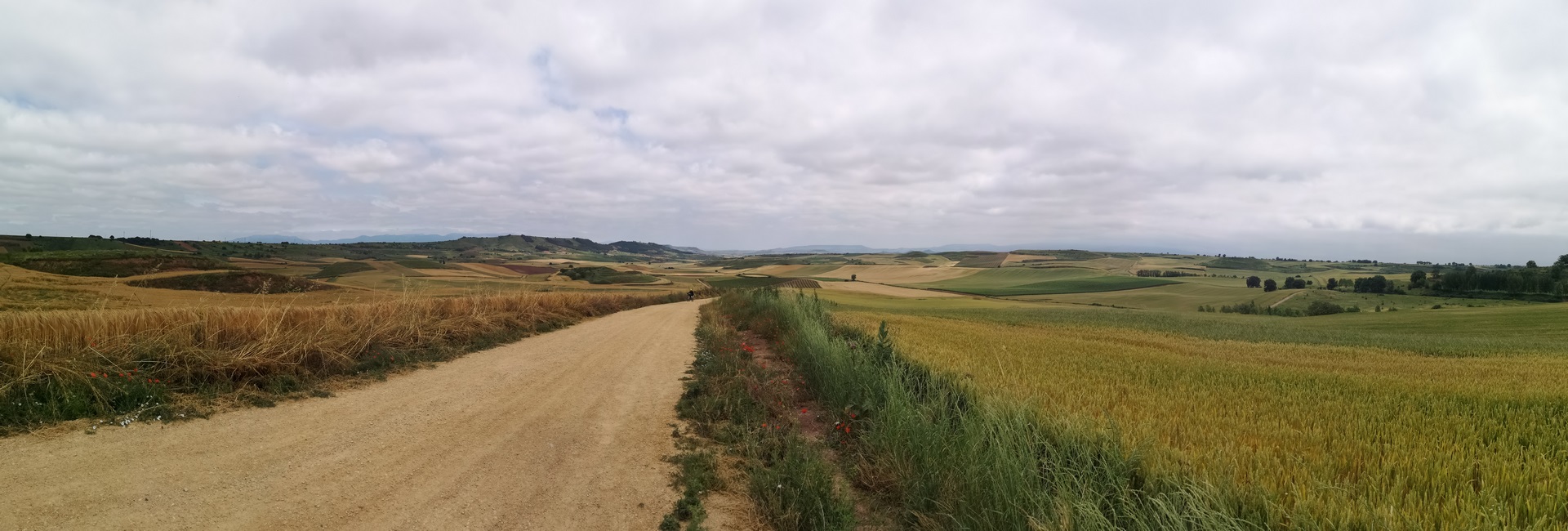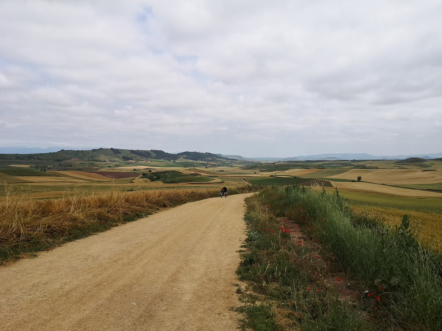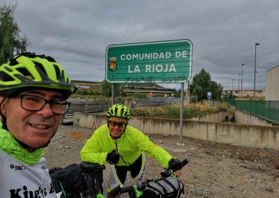 11:25, con el estómago lleno salimos de Navarrete, hace fresquito y continúa el aire que, hace ya unos kilómetros, nos viene acompañando y dificultando el avance pues sopla de frente. Afrontamos una subida, no muy pronunciada, pero muy, muy prolongada, luego todo bajada, gracias a eso hemos cogido un buen ritmo y llegado a Nájera sobre las 12:45.