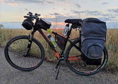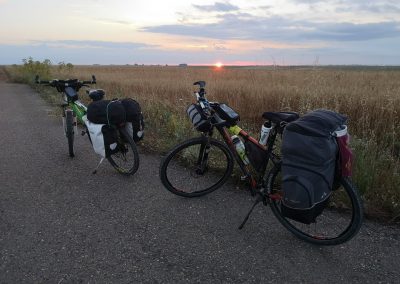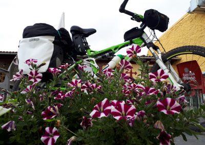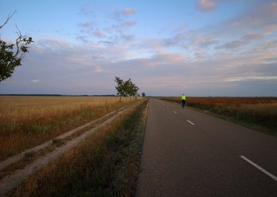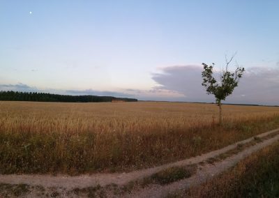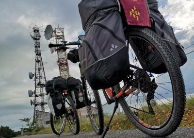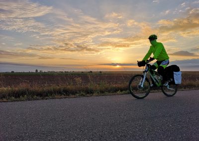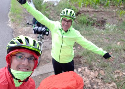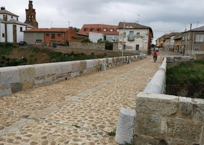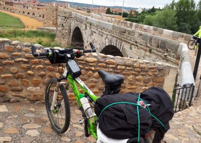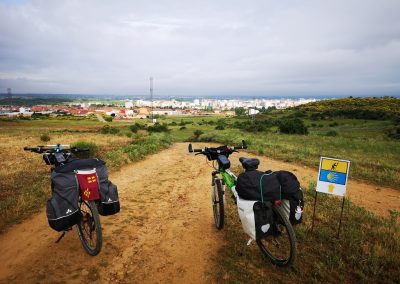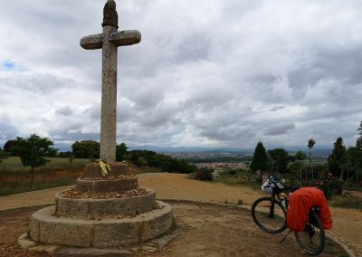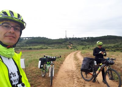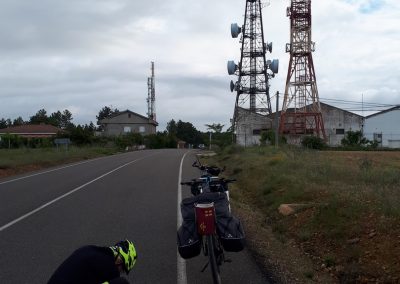 Lunes 2 de julio de 2018, como predije ayer, he dormido regular con el colchón blando y el somier de muelles, hoy hemos madrugado, a las 6:30 ya estamos en camino. Circulamos durante 18 o 20 km por una estrecha senda paralela a la carretera, por ella caminan muchos peregrinos, esto nos obliga a ir despacio e ir dándole al timbre continuamente, así que decidimos hacer algunos de esos kilómetros por la carretera para no molestar, ni ser molestados.
