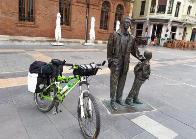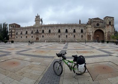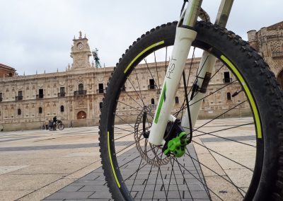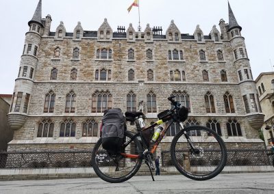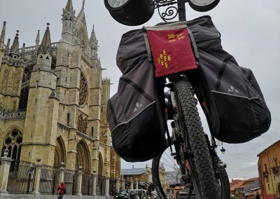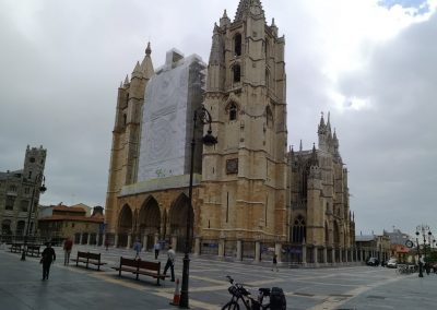 Llegamos al centro de León, enfrente de la catedral, en la Oficina de Información de Turismo, hemos sellado, realizamos unas cuantas fotos y continuado hasta que nos topanos con el Museo Gaudí Casa Botines donde hemos repetido otra sesión de fotos, después de esto continuamos la etapa de hoy, son las 10:26.