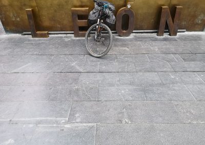 El recorrido hasta León es muy llano, pero antes de llegar tenemos que afrontar una corta pero intensa subida para luego bajar hasta la ciudad. De momento todo sin incidencia alguna, hemos llegado a León a las 9:10, paramos en el Mercadona a hacer algunas compras y ahora vamos a ver dónde conseguimos que nos pongan el sello en la credencial. El trayecto de hoy, hasta ahora, no ha sido especialmente llamativo, solamente destacar el amanecer al salir de El Burgo Ranero, donde hemos hecho unas fotos muy bonitas.